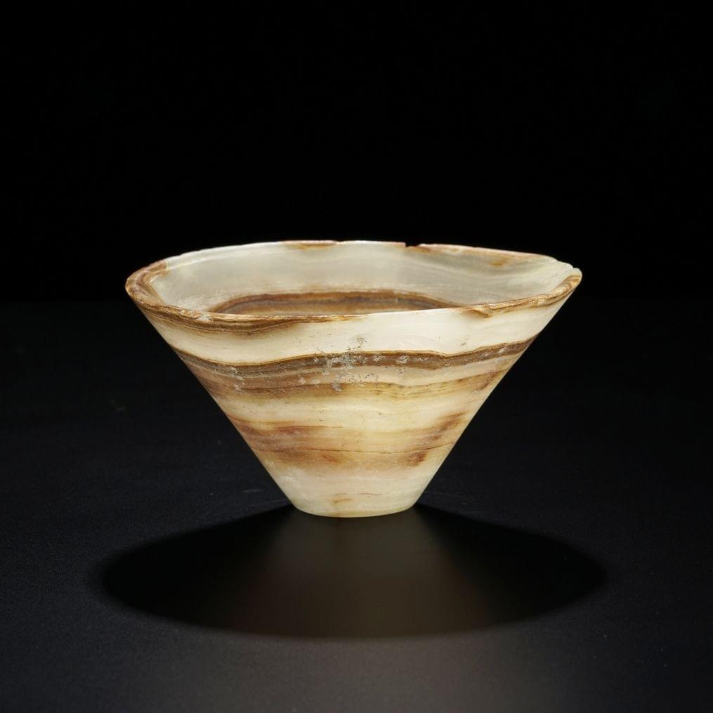 A sumerian banded alabaster vase of a conical form. Provenance: Swiss private collection
