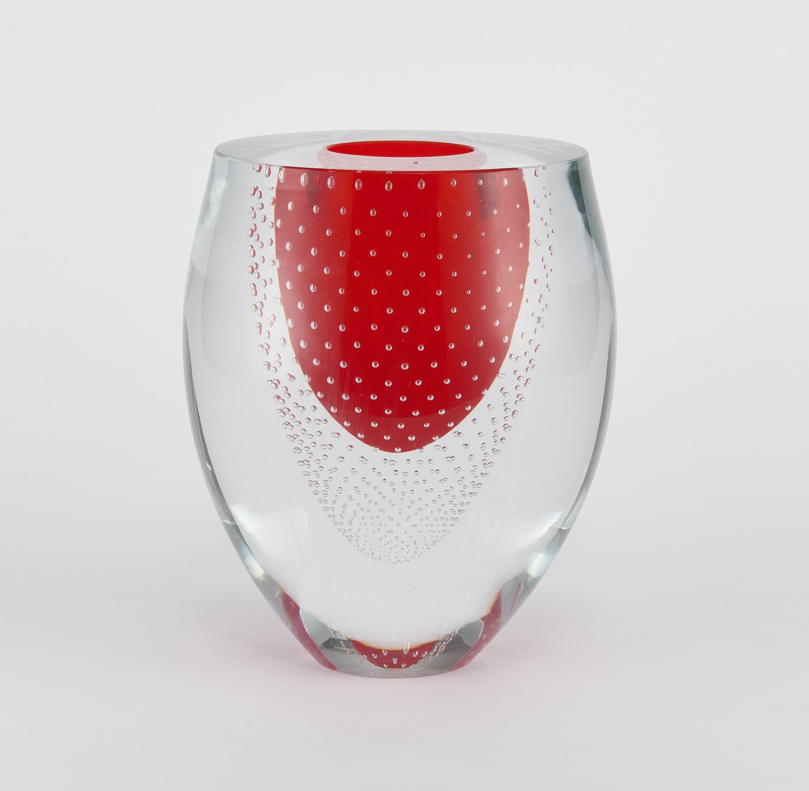 Verre blanc et rouge à décor de bulles, H 19 cm