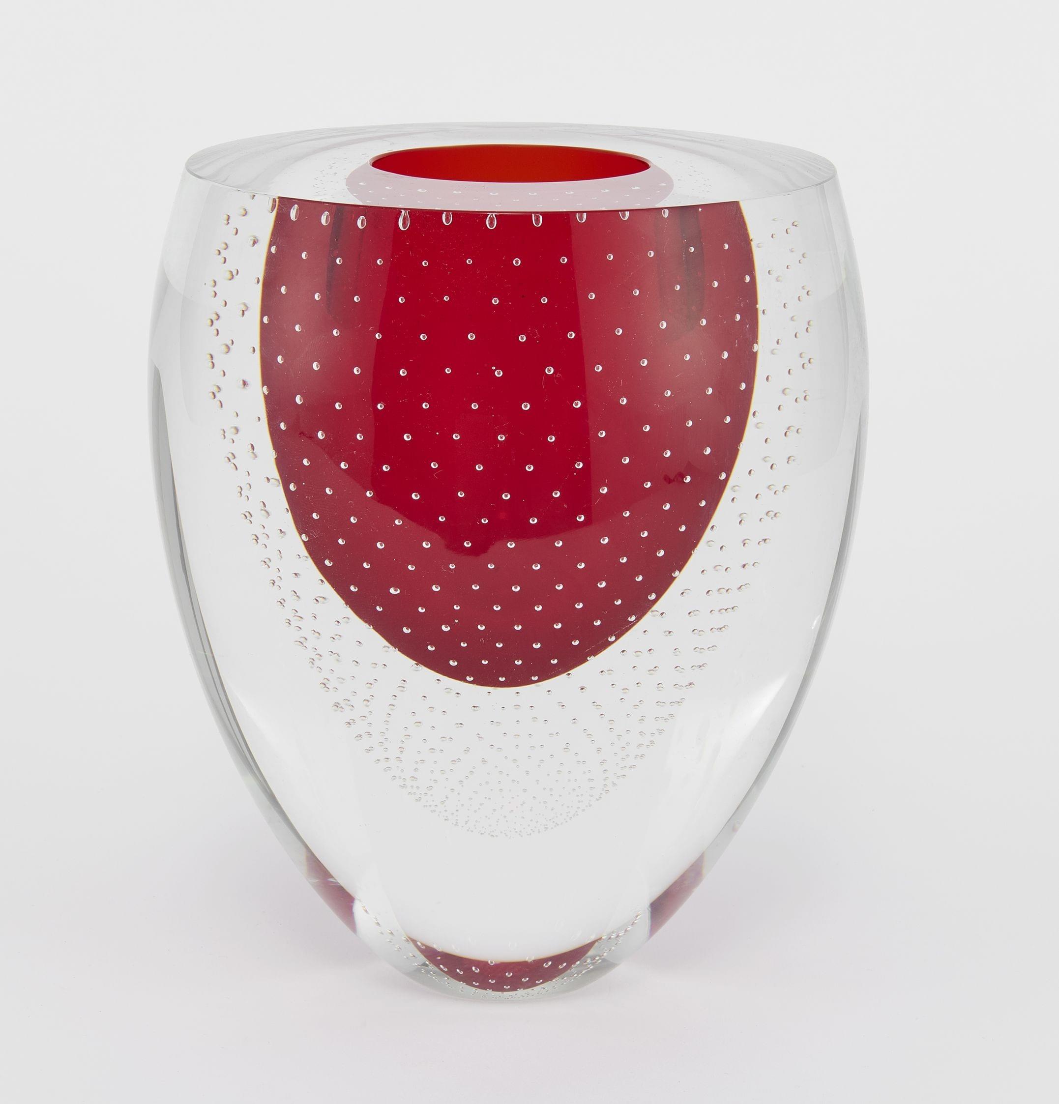 Verre blanc et bordeaux à décor de bulles, H 22,5 cm