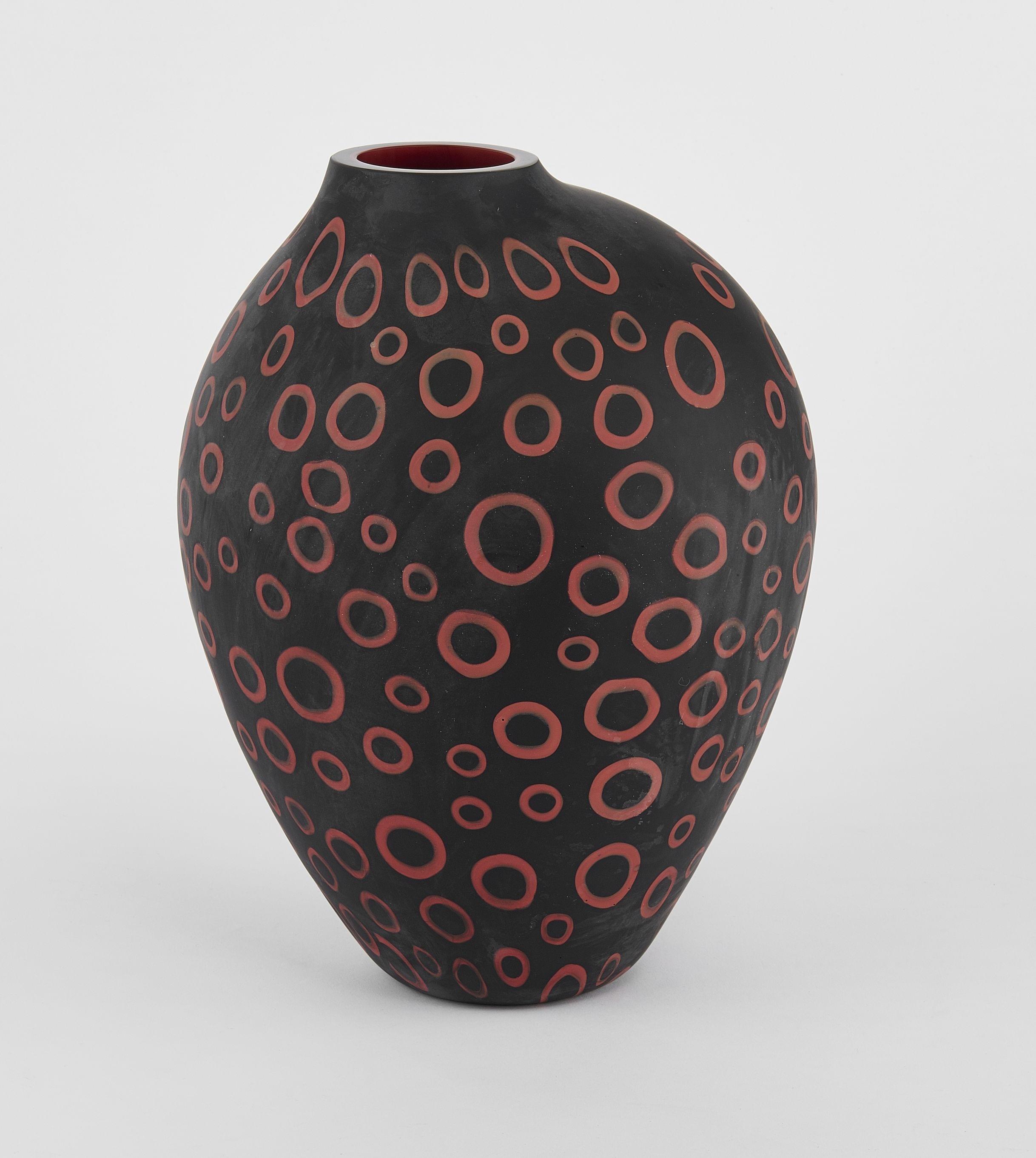 Verre multicouche à décor de ronds orange, H 28,5cm