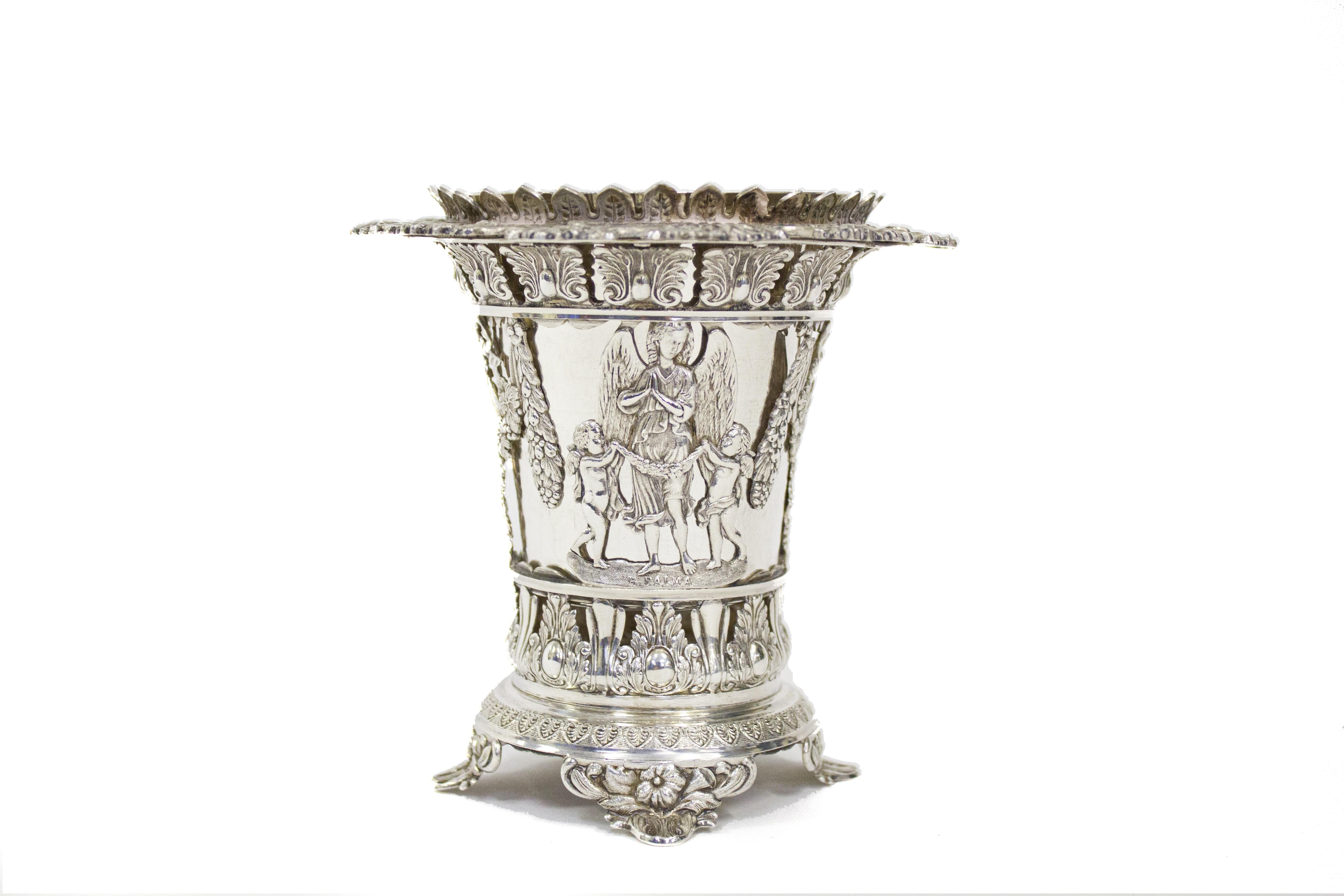 Porcelaine émaillée monochrome, anses latérales cerf, H 17,5 cm