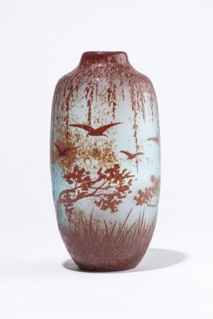 Verre à décor de cerfs dans la forêt, H 26 cm