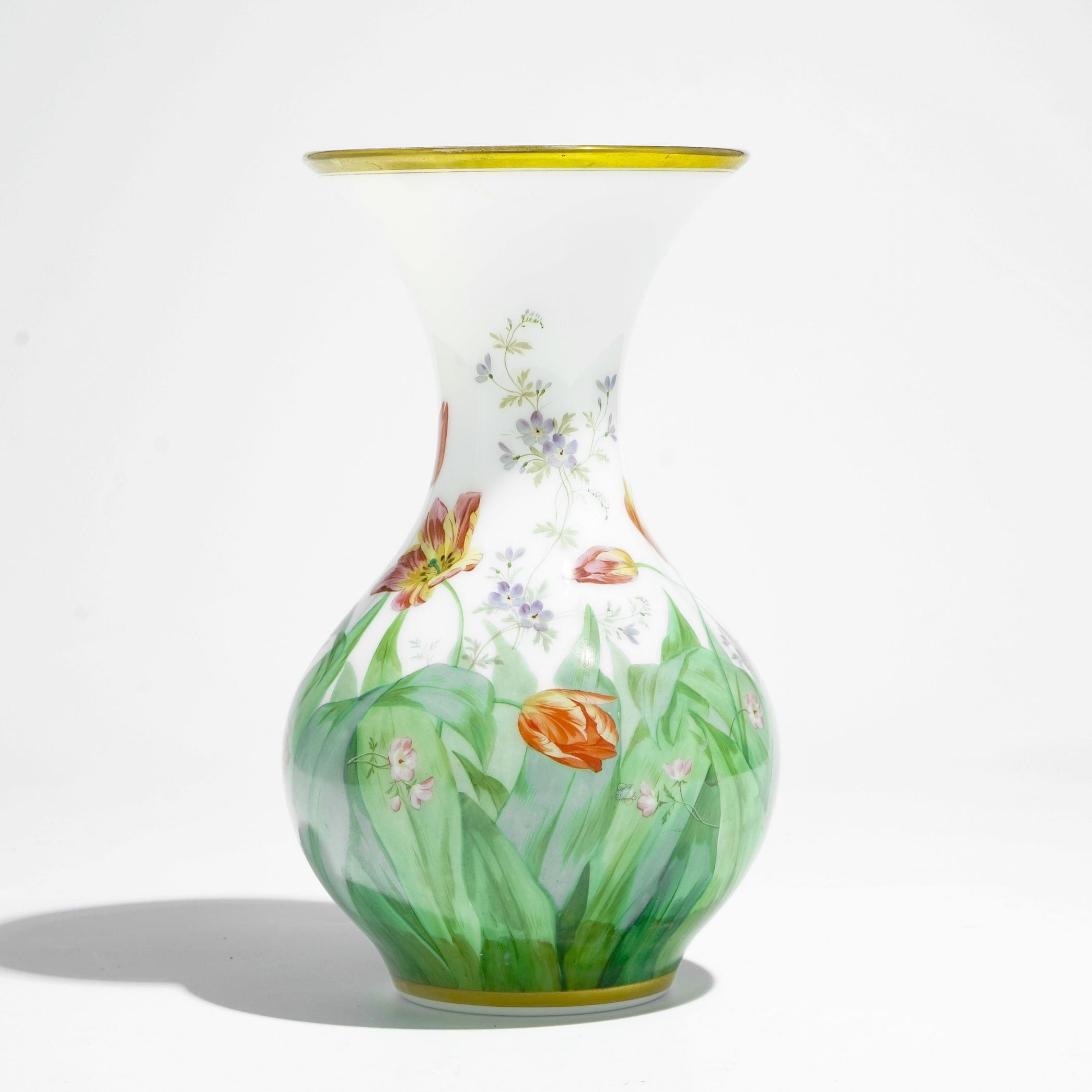 221. Vase opaline blanche dans le goût de Baccarat, milieu XIXe s