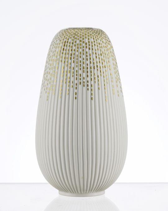 Porcelaine à décor côtelé orné d'une pluie de gouttes dorées, daté 1956, H 22 cm