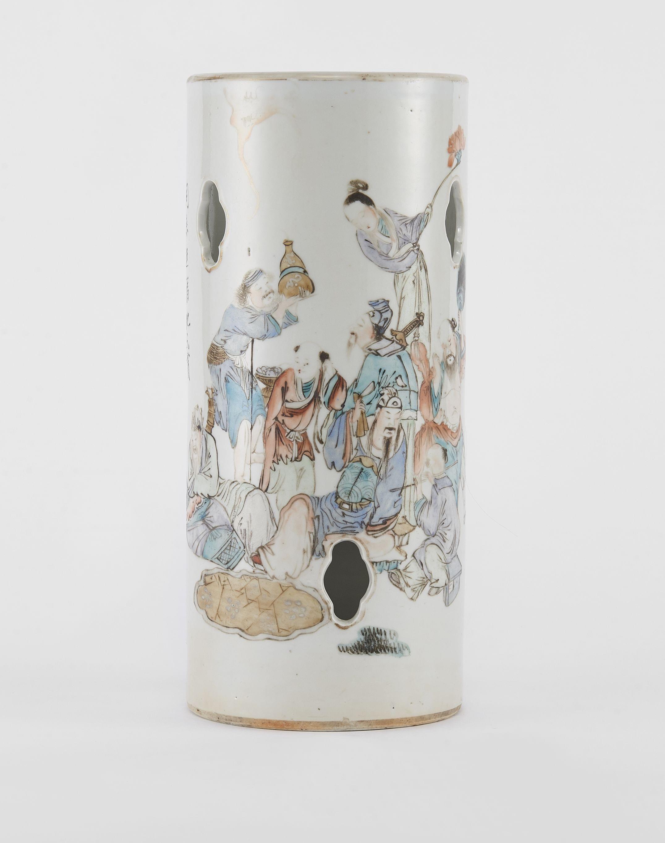 Porcelaine émaillée polychrome à décor de personnages et poèmes, H 28 cm