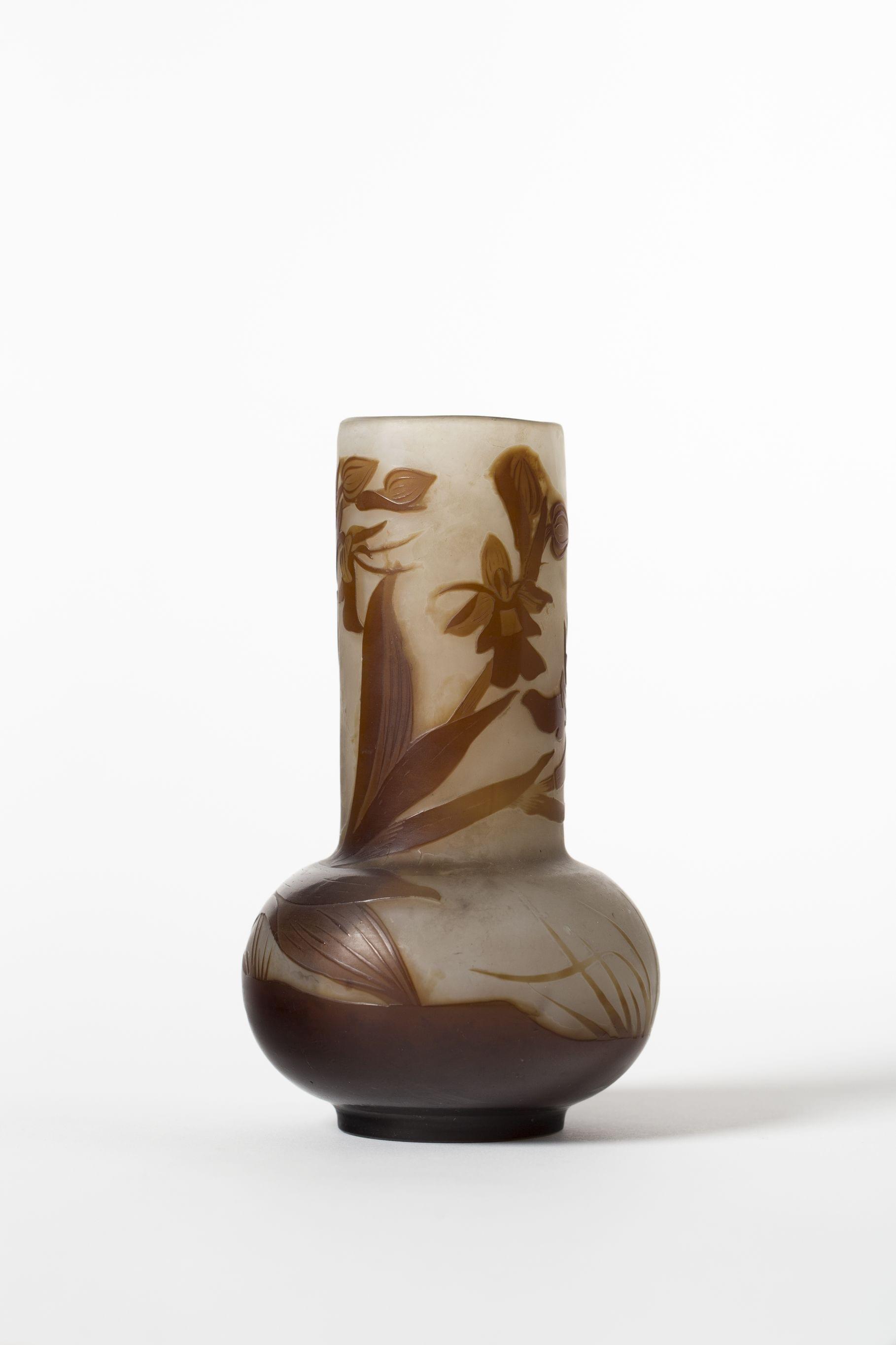 Verre multicouche dégagé à l'acide, à décor de fleurs, H 17 cm