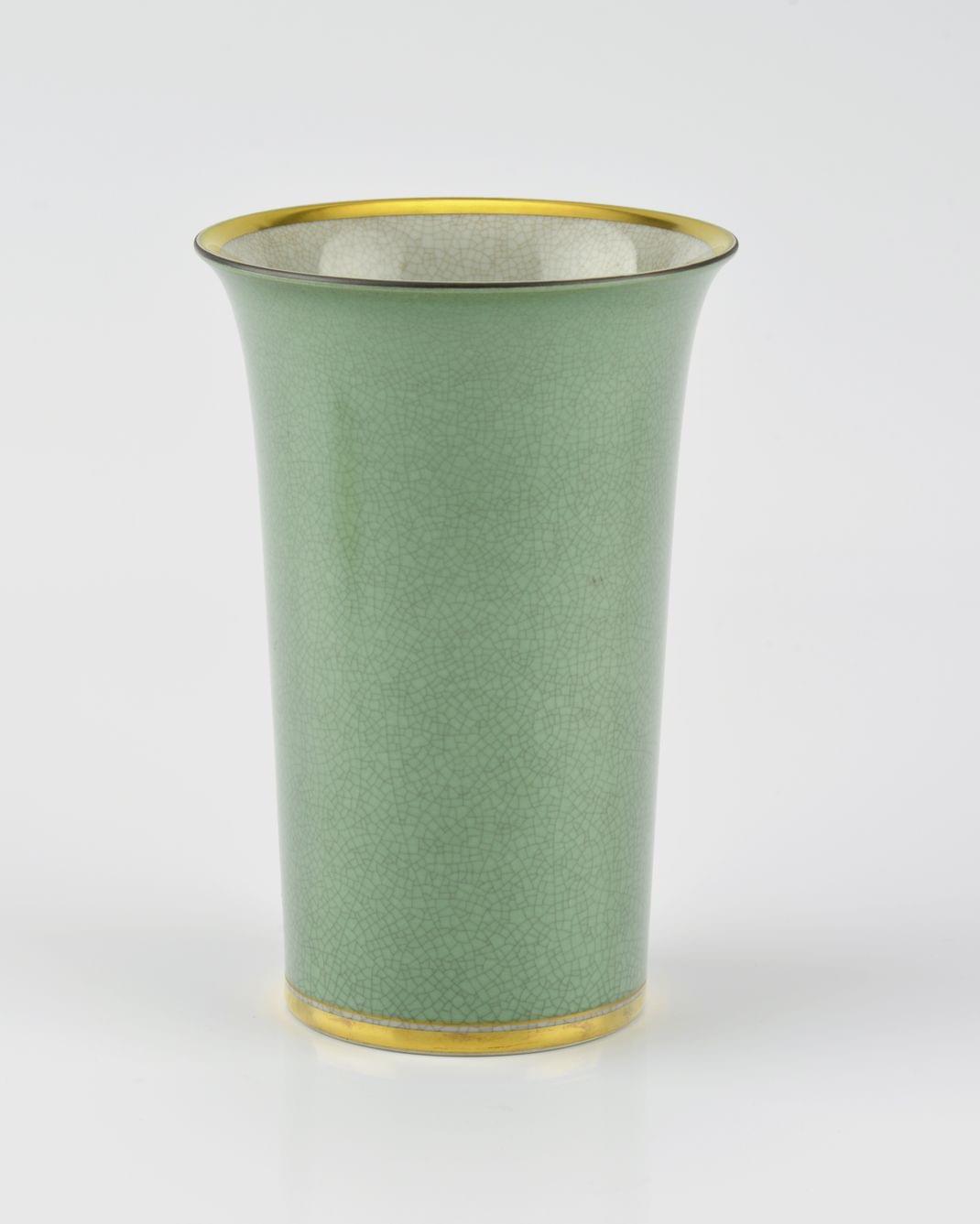 Porcelaine émaillée vert turquoise à craquelures et rehauts de filets dorés, cachet de la manufacture, numéroté 751/4225, H 18 cm