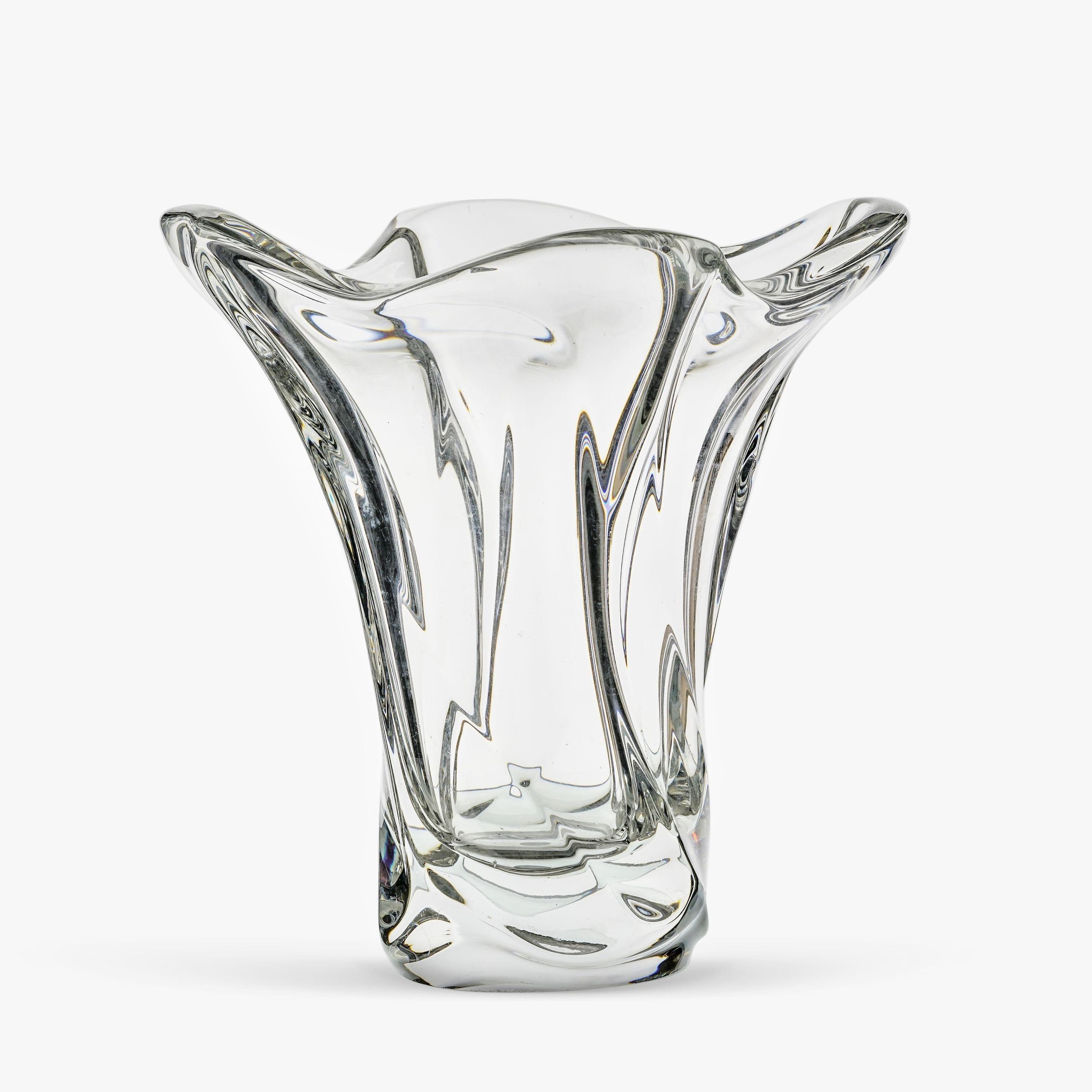 Verre multicouche dégagé à l'acide à décor de fleurs mauves sur...