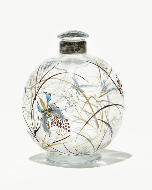 Verre à décor émaillé de papillons et fleurs, H 9,5 cm
