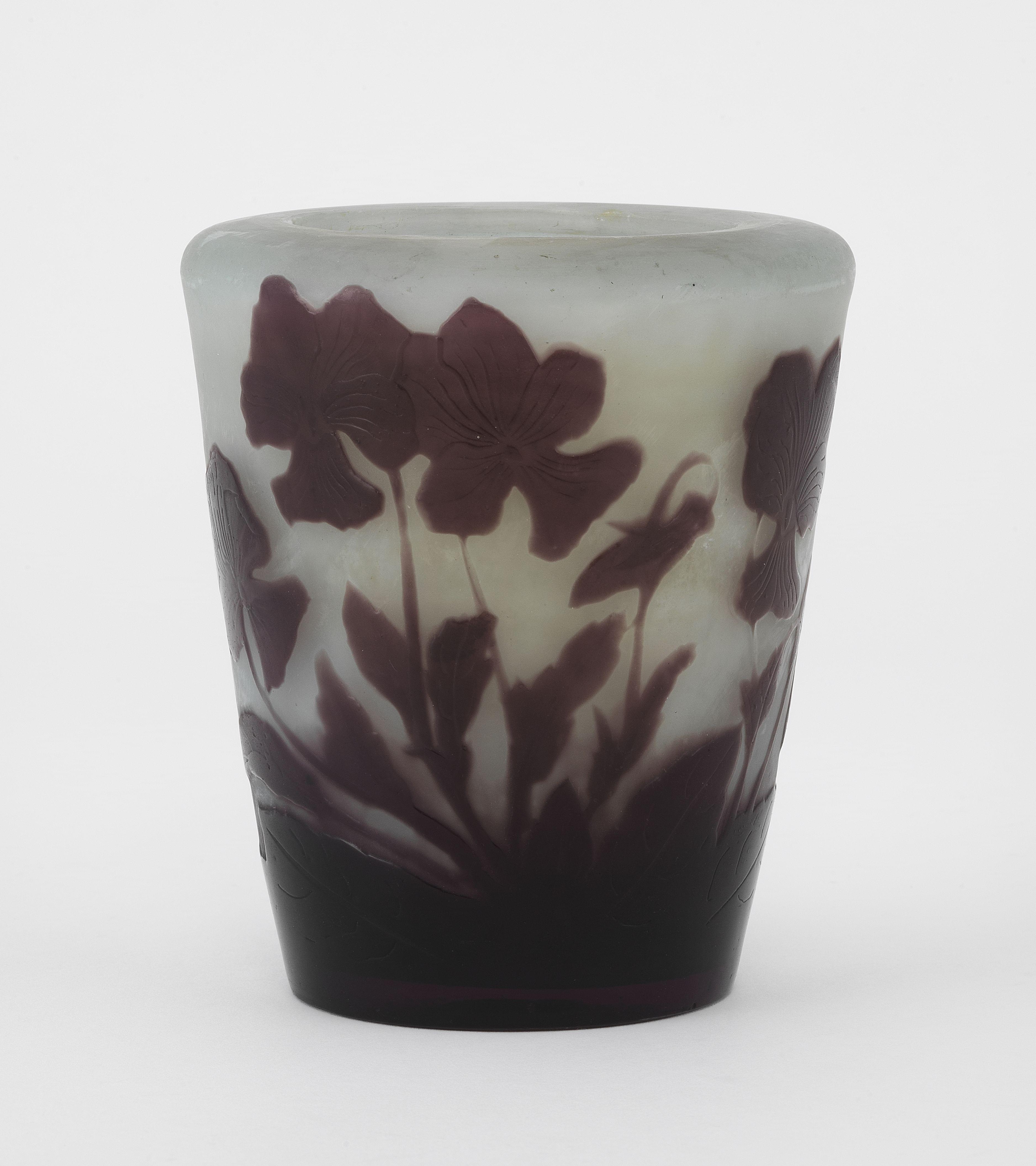 Verre multicouche dégagé à l'acide à décor de fleurs, H 11 cm