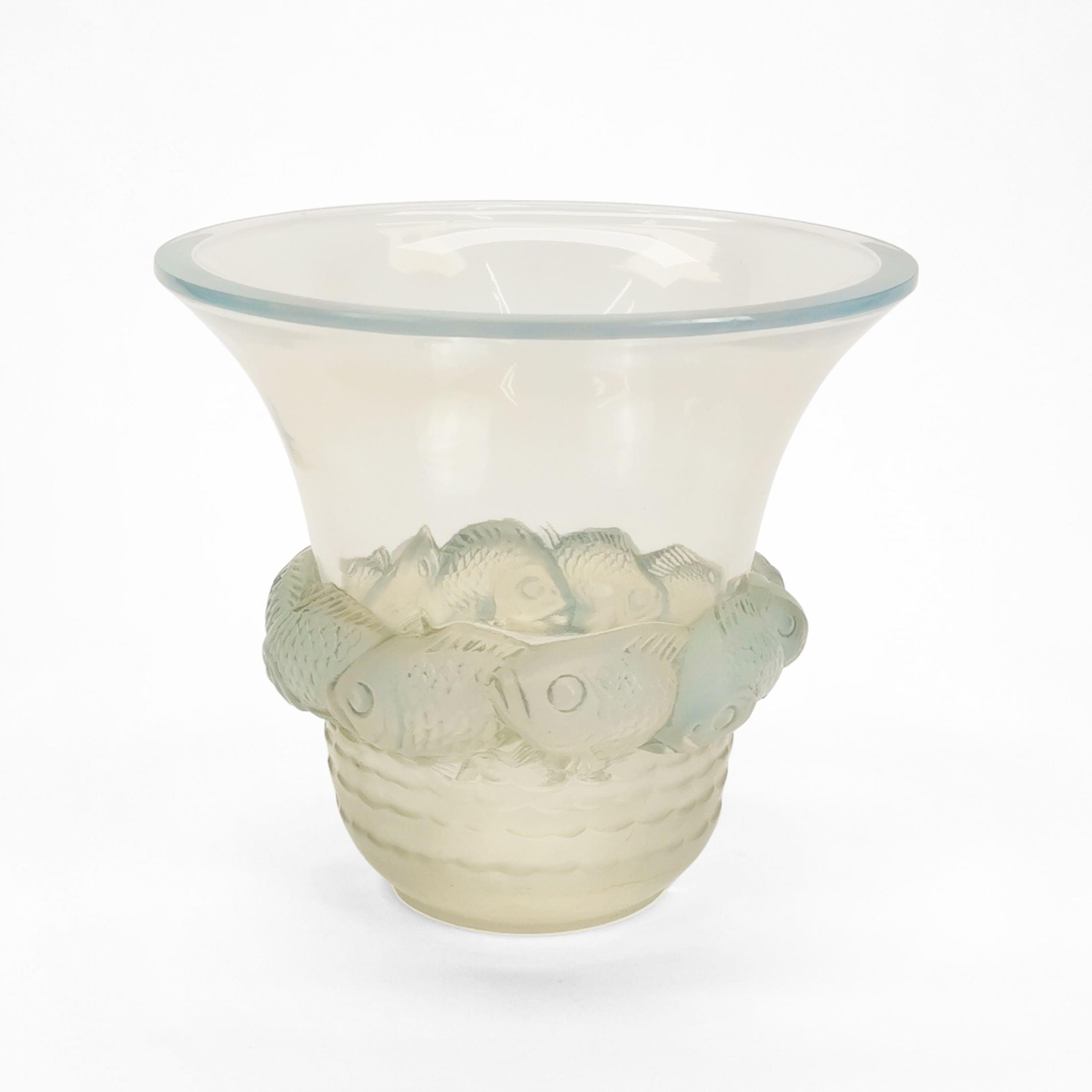 Verre blanc moulé-pressé et opalescent, H 20,5 cm. Modèle créé e...