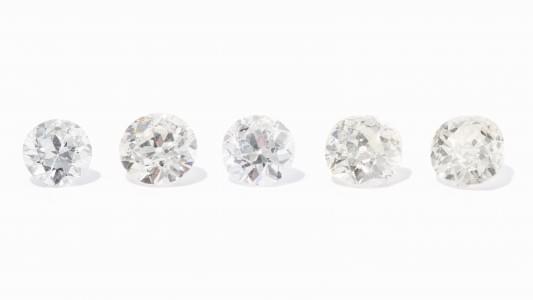 Lot de 5 diamants sur papier: 2 taille coussin (env. 1,5 ct) et...