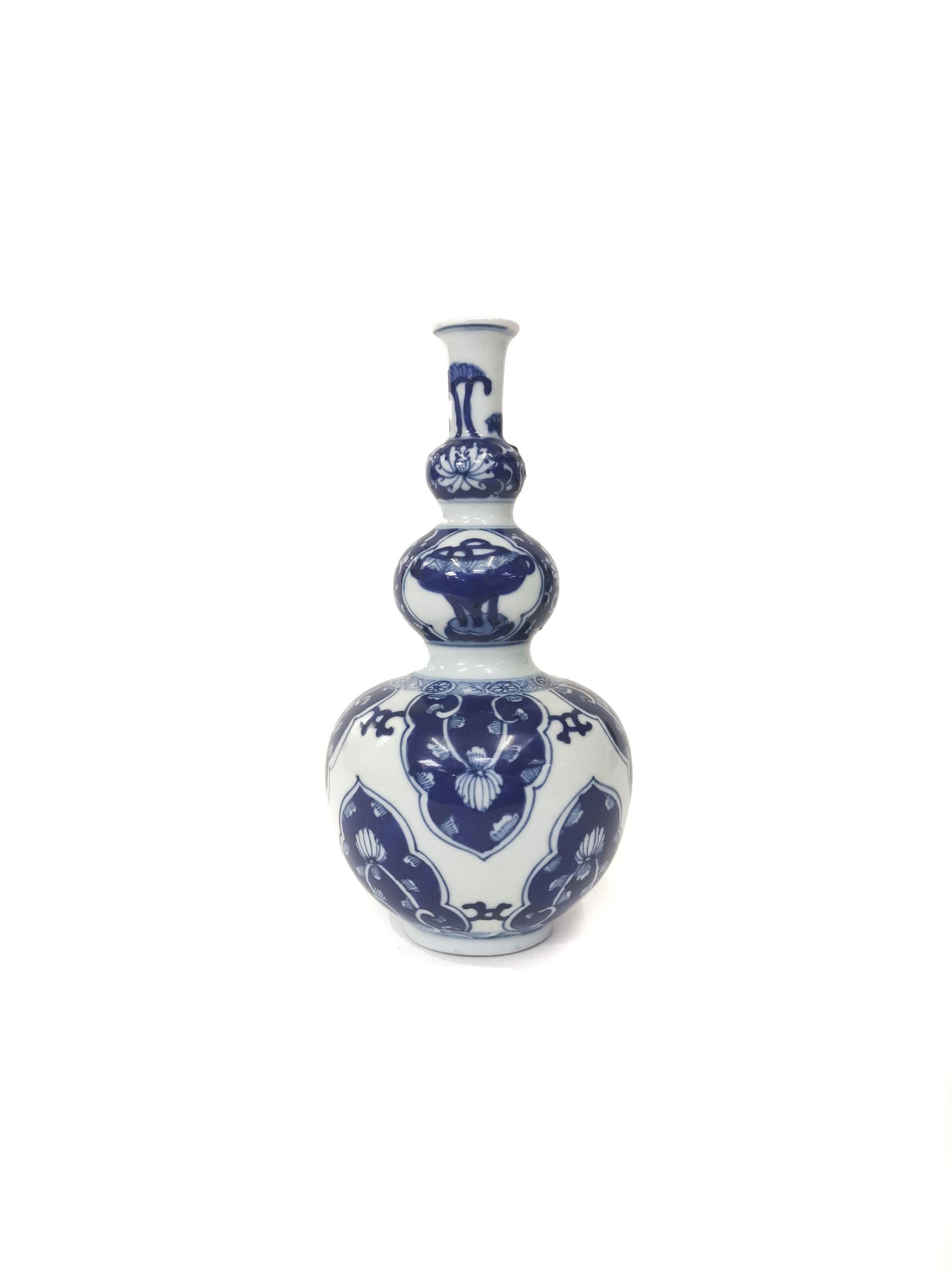 Porcelaine émaillée bleu blanc à décor de jardin, H 17 cm