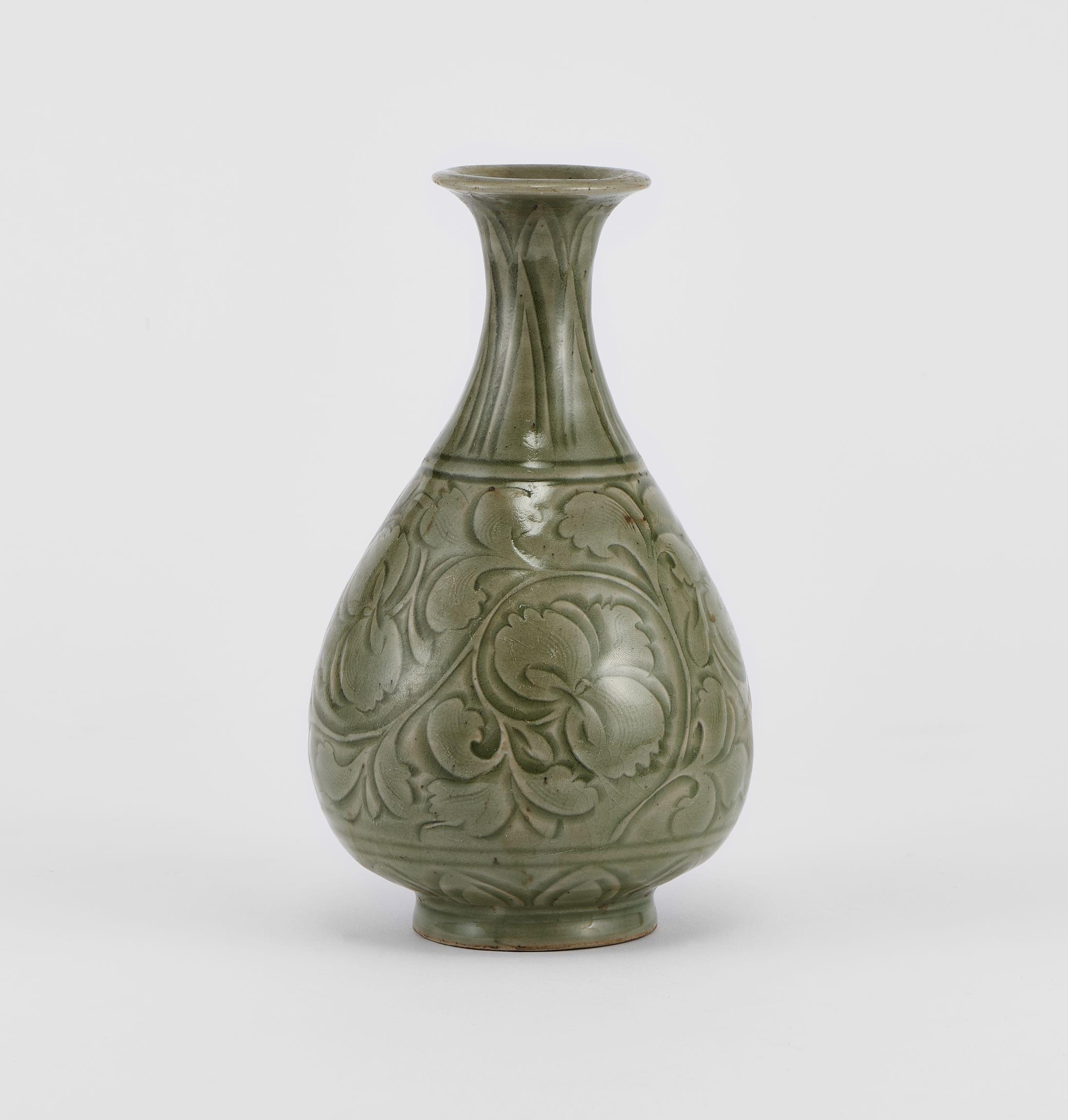 Porcelaine céladon à décor floral stylisé en léger relief, H 19 cm