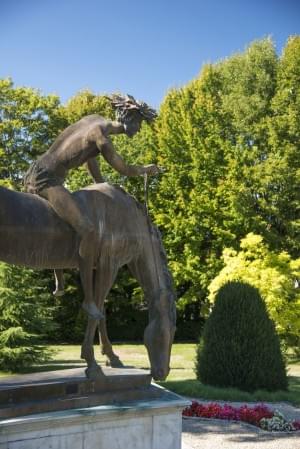 Il cavaliere della Pace (Le cavalier de la Paix), bronze signé et intitulé dans la masse, marque de fonte de l'atelier de Crocetti, 290x260 cm
