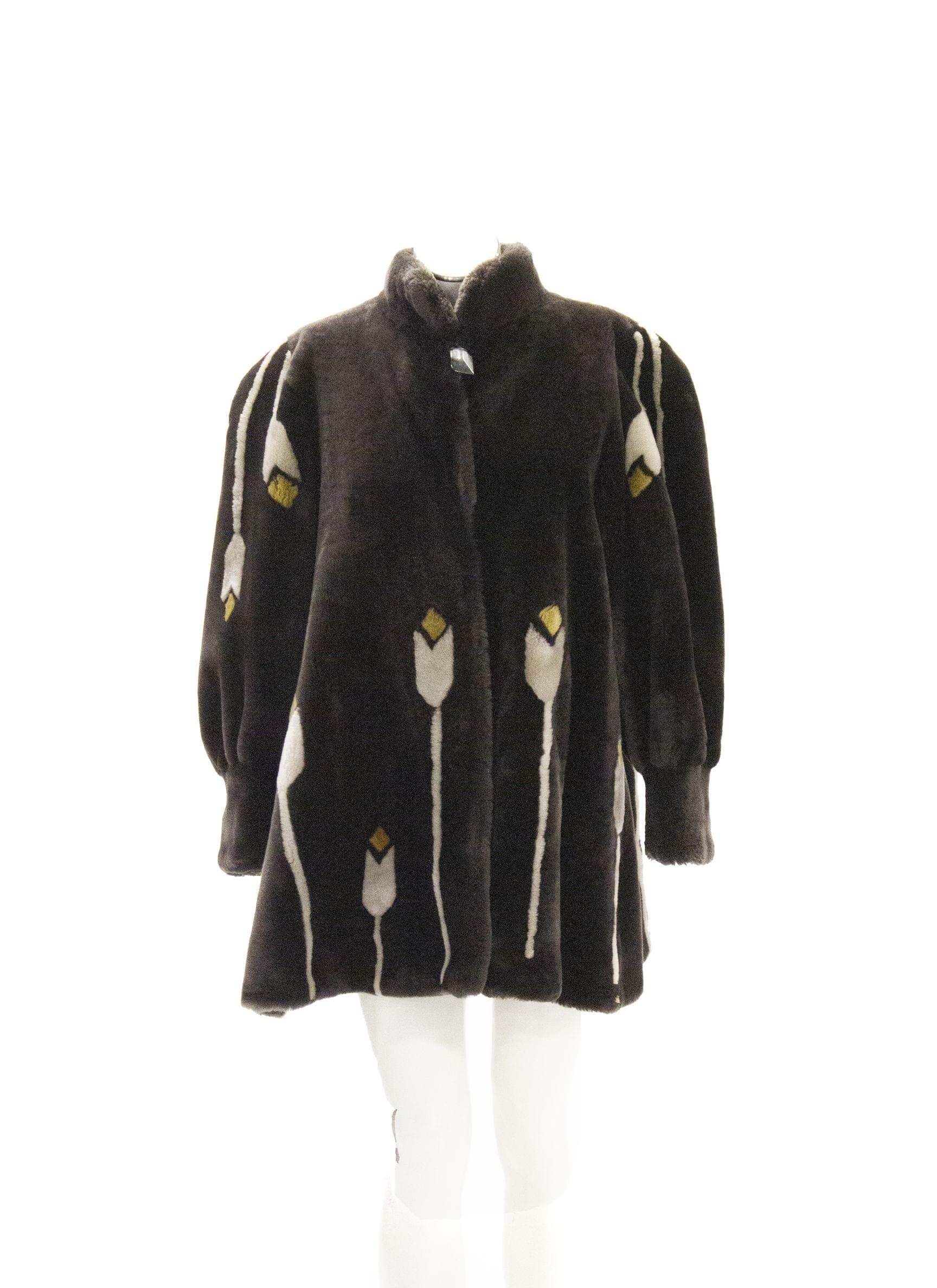 Fourrure de léopard, col et bordure en vison noir, intérieur en...
