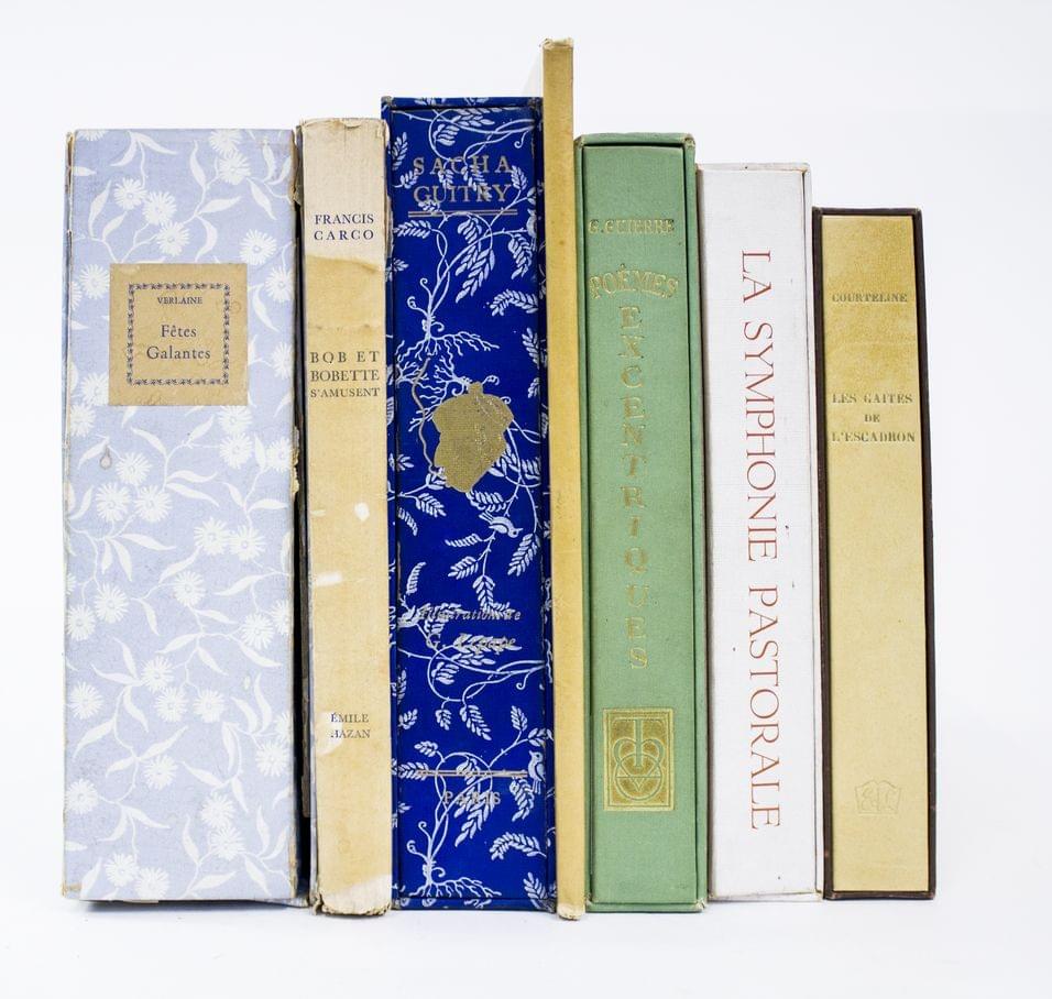 - GUS BOFA - GUIERRE: Poèmes excentrique. Paris, 1938; in-8 en ff. sous chemise et double emb. Un des 438 ex. num. sur Arches.