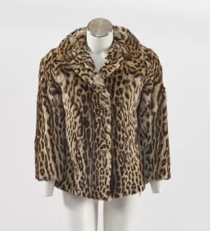 Fourrure d'ocelot, intérieur en tissu vert foncé, fermeture à cr...