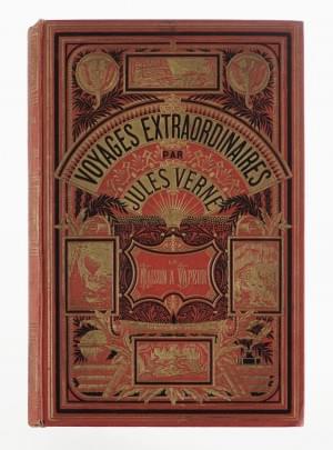 Grand in-8°, percaline rouge de l’éditeur, ornée sur le dos et les plats, le plat supérieur est dit « aux deux éléphants », tranches dorées. Reliure de LENEGRE. Ex. complet en fin de vol., des 8 pages du catalogue Hetzel (dos à peine décoloré, infimes rousseurs en début de vol.)