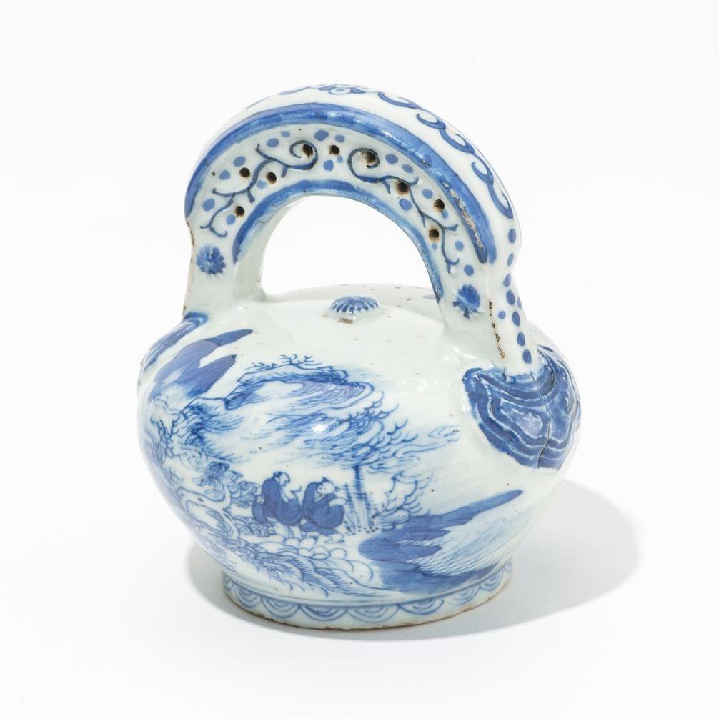 Porcelaine émaillée bleu et blanc de rinceaux, Chine, dynastie Q...