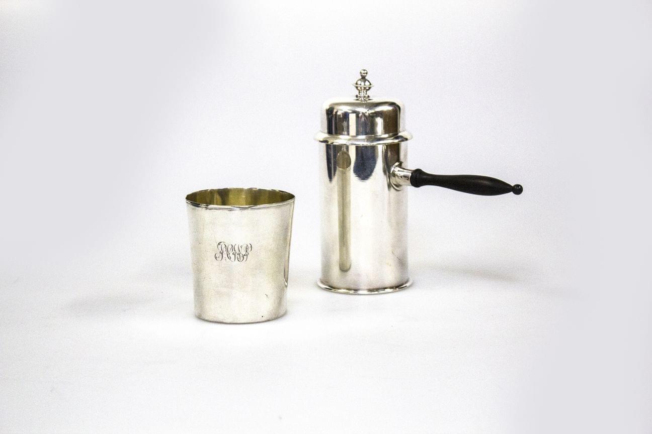 3257. Verseuse ronde martelée et petit plat carré Art Déco, Genève