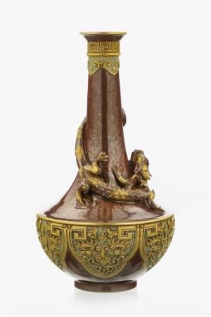 Porcelaine émaillée à l'imitation du bronze patiné et doré et à...