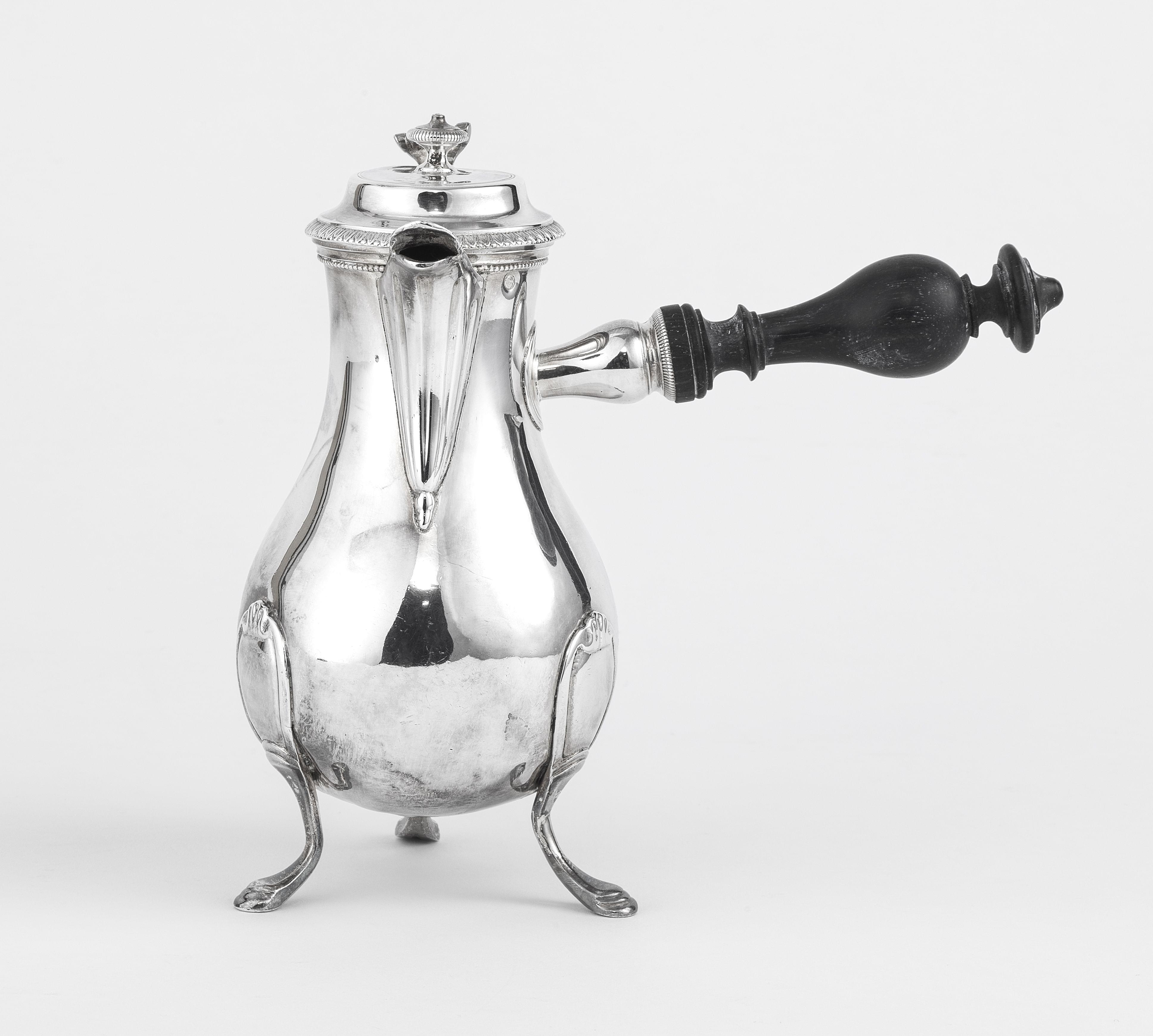 132. Cafetière néoclassique tripode à bec verseur cheval