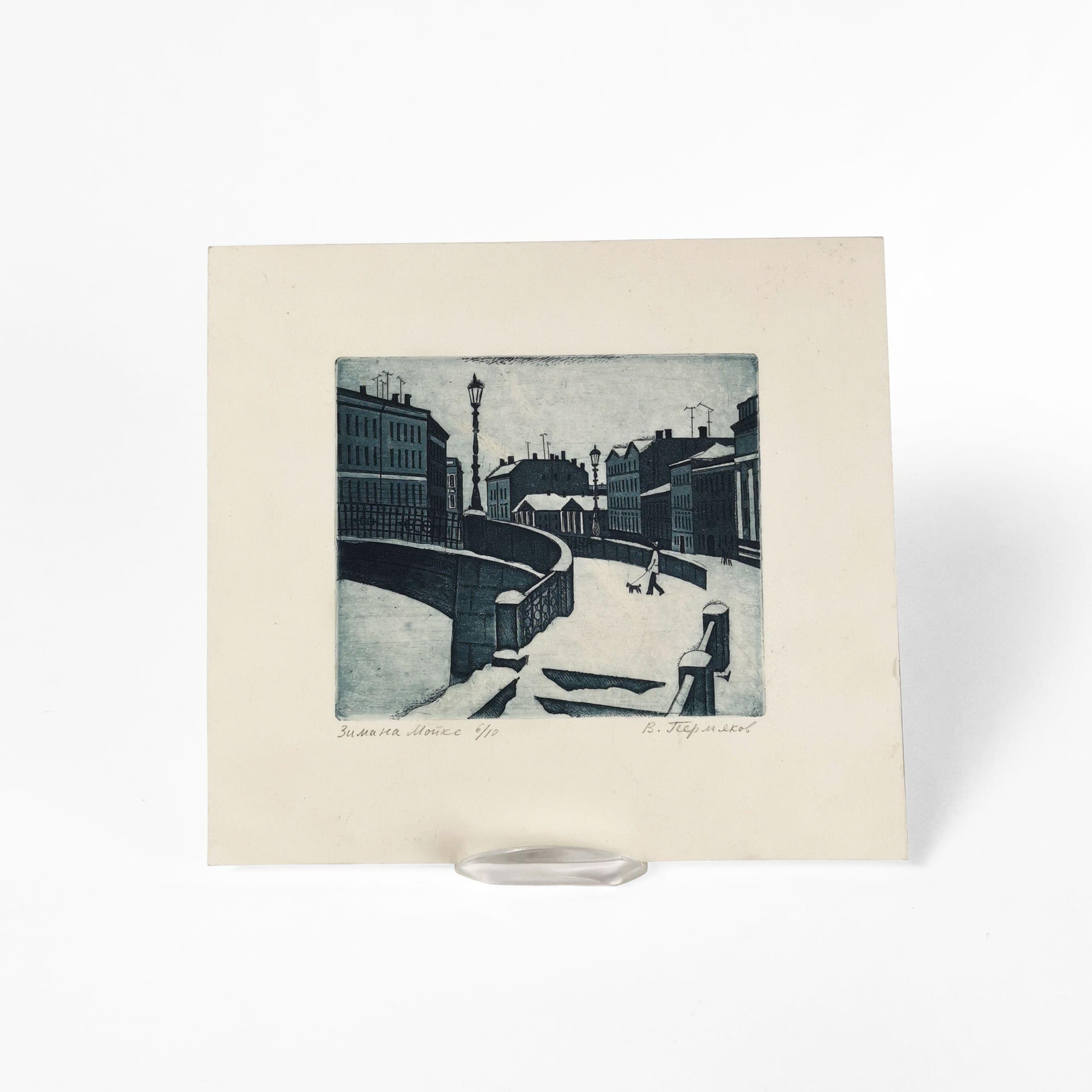 Quai de la Moïka, estampe, contresignée à la mine de plomb, 10x12 cm