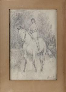 Jeune cavalière, crayon, signé et daté 1953, 21x14 cm