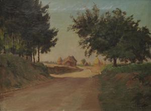 Les meules, huile sur toile, monogrammée, 25x32 cm