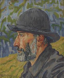 Profil d'homme à la moustache, huile sur toile, signée, 46x38 cm
