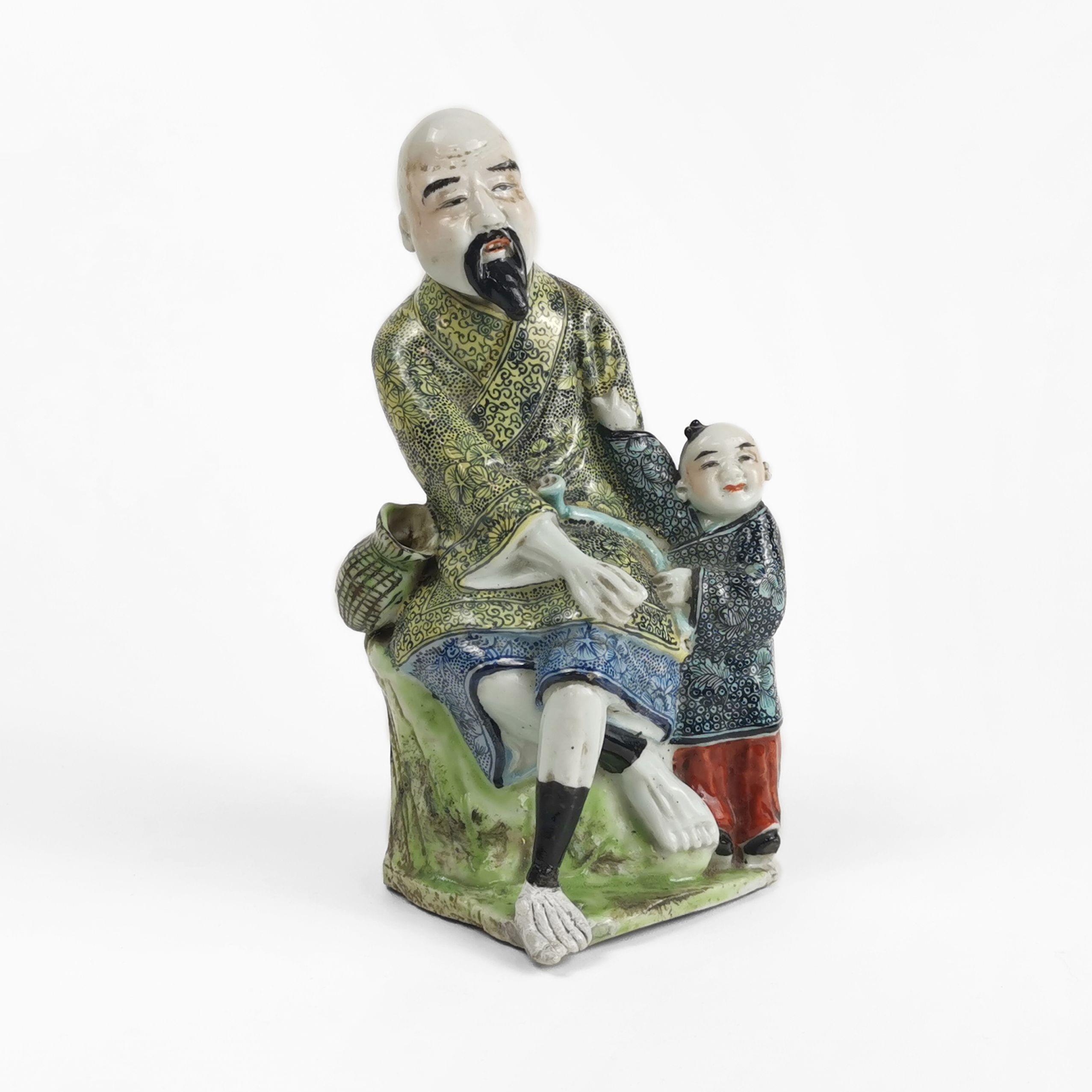 Porcelaine émaillée bleu blanc à motifs de personnages, D 26 cm