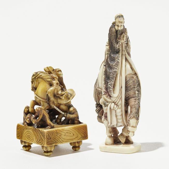 47. Lot formé de deux sceaux, l'un émaillé et serti d'une intaille s...