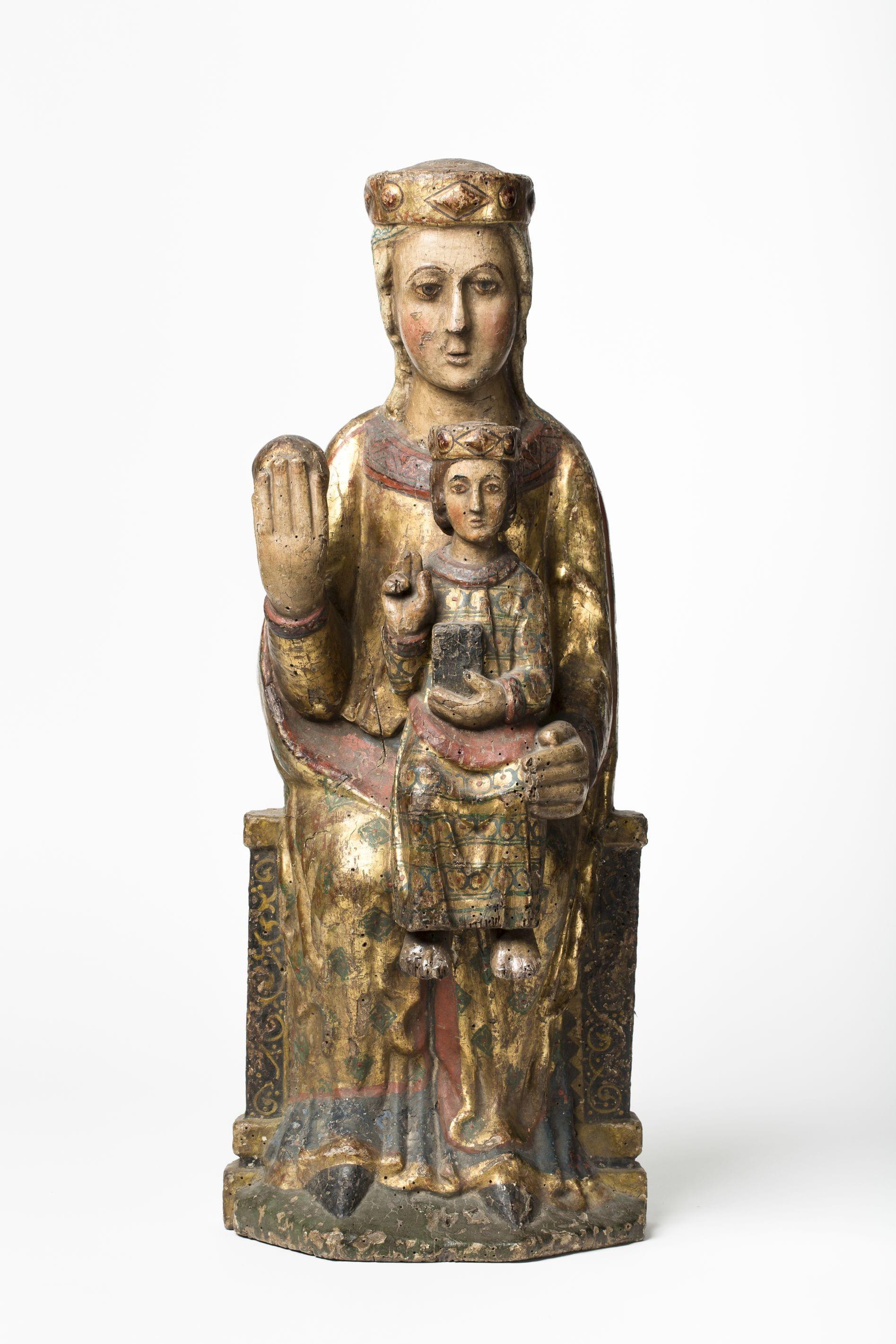 Bois sculpté doré et polychrome, H 28 cm