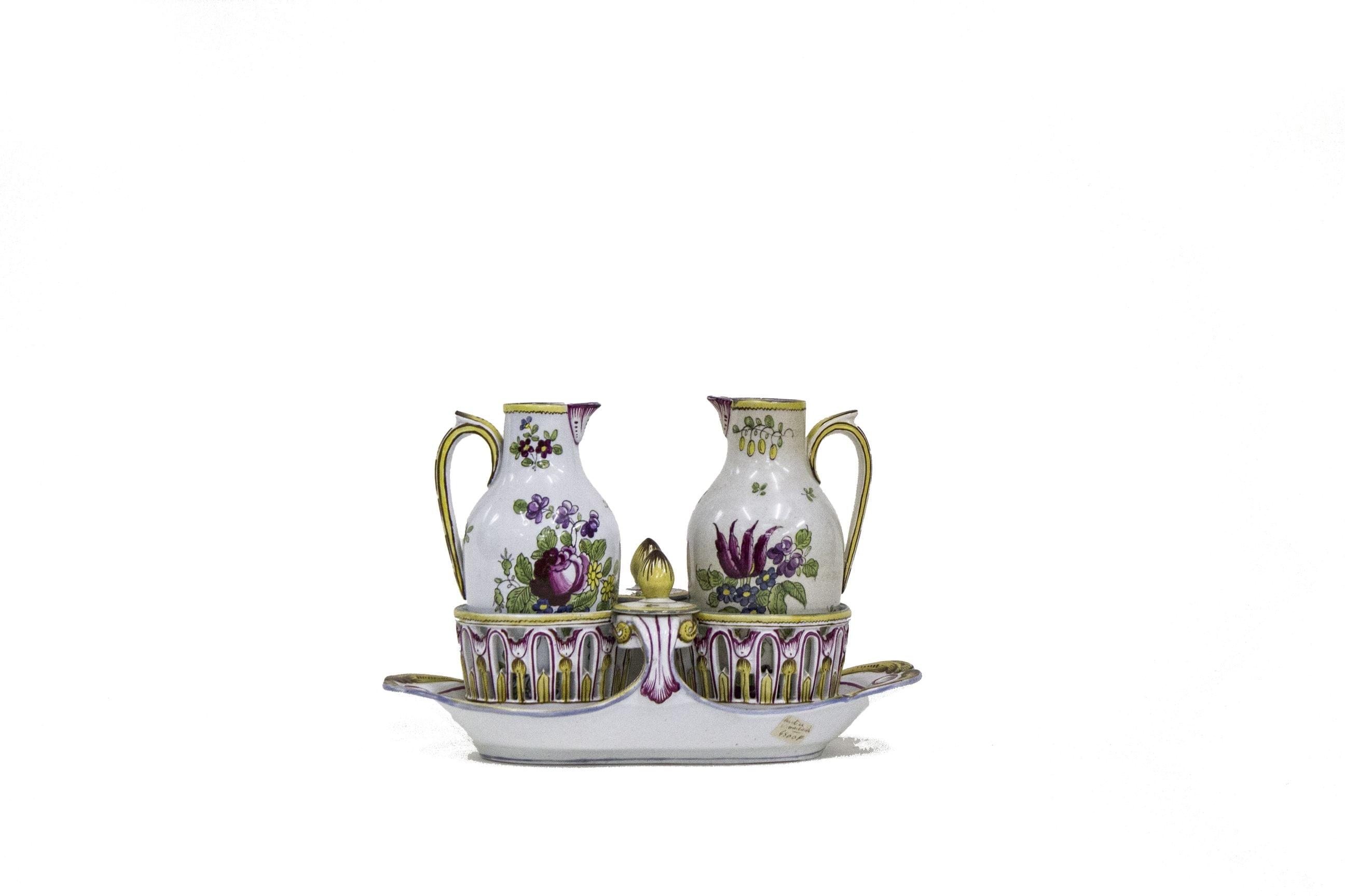 3262. Vinaigrier et huilier à décor émaillé polychrome