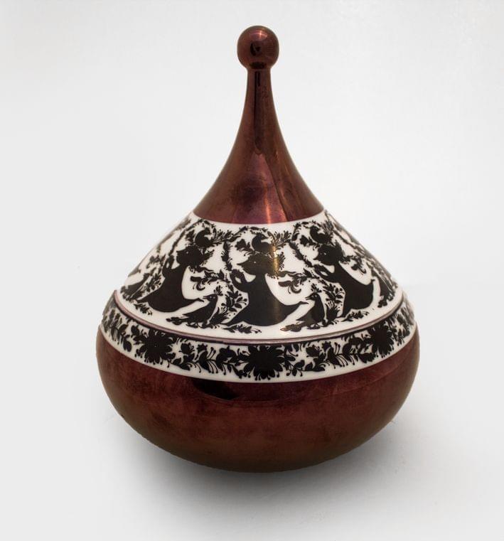 577. Vase à deux anses à décor de personnages dans un jardin rehaussé...