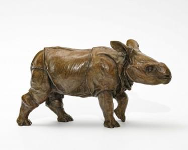 Jeune rhinocéros, bronze à patine brune, signé et numéroté II/IV...