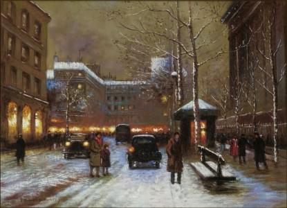 La place de la Madeleine sous la neige, pastel, signé, 37x51 cm