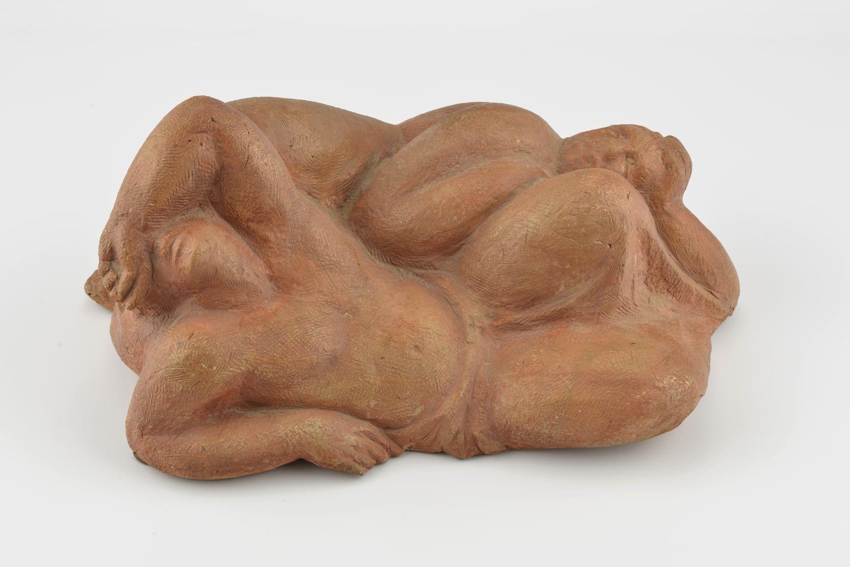 Nus alanguis, terre cuite à patine rose, non signée, L 40 cm