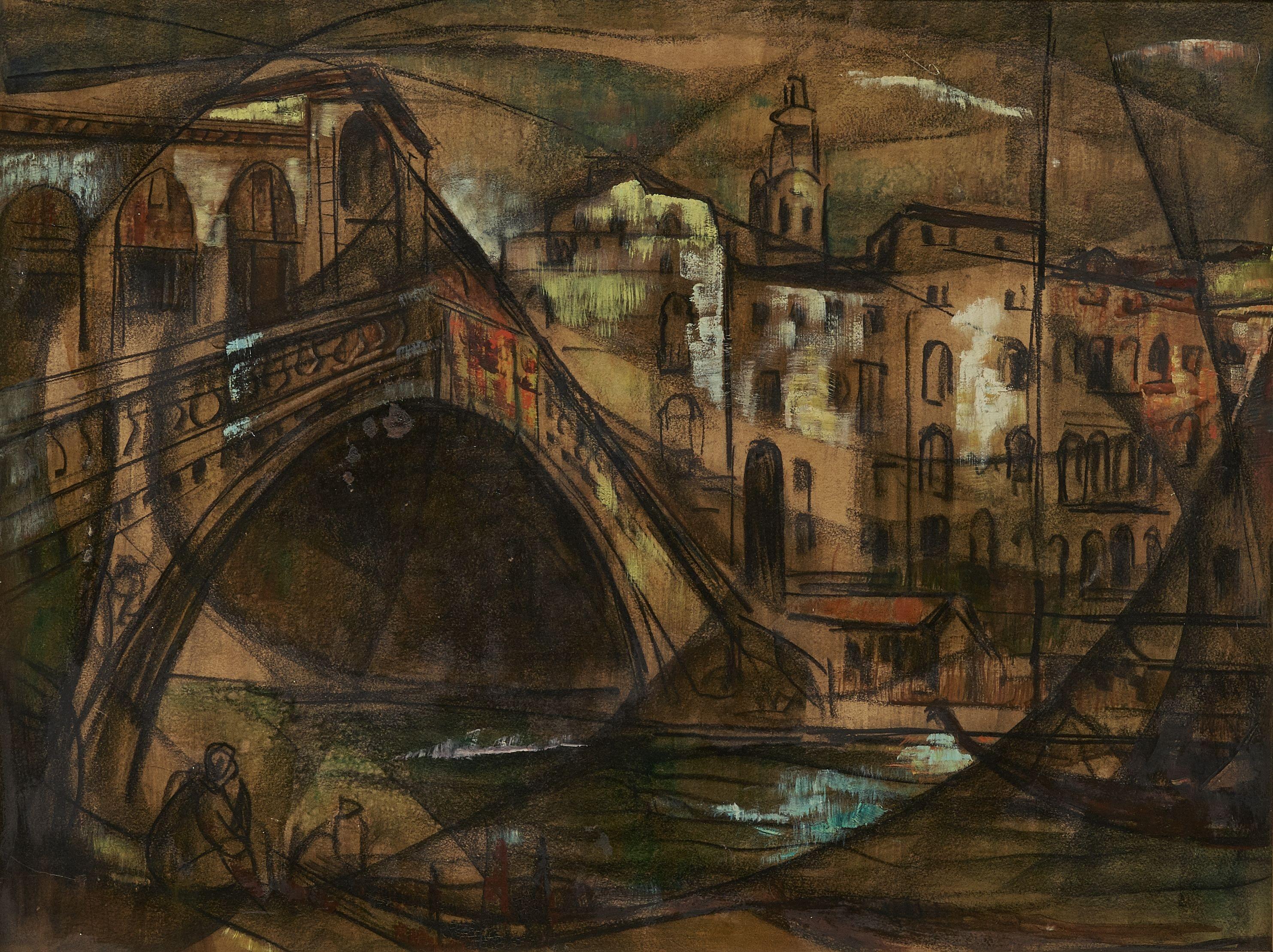 Ponte di Rialto, huile sur pavatex, signée, 84x60 cm