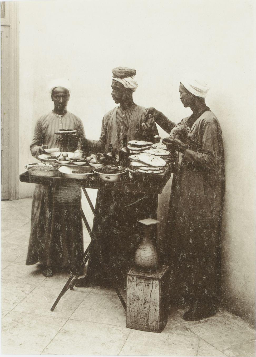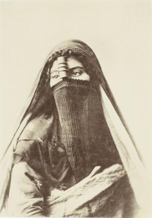 Deux photographies représentant l'une des vendeurs ambulants et l'autre un portrait de jeune femme voilée, tirage argentique, 22 x16 cm
