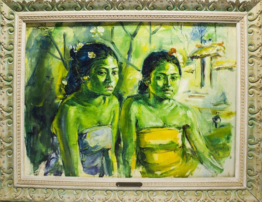 Portrait d'une jeune indonésienne au turban, huile sur toile, si...