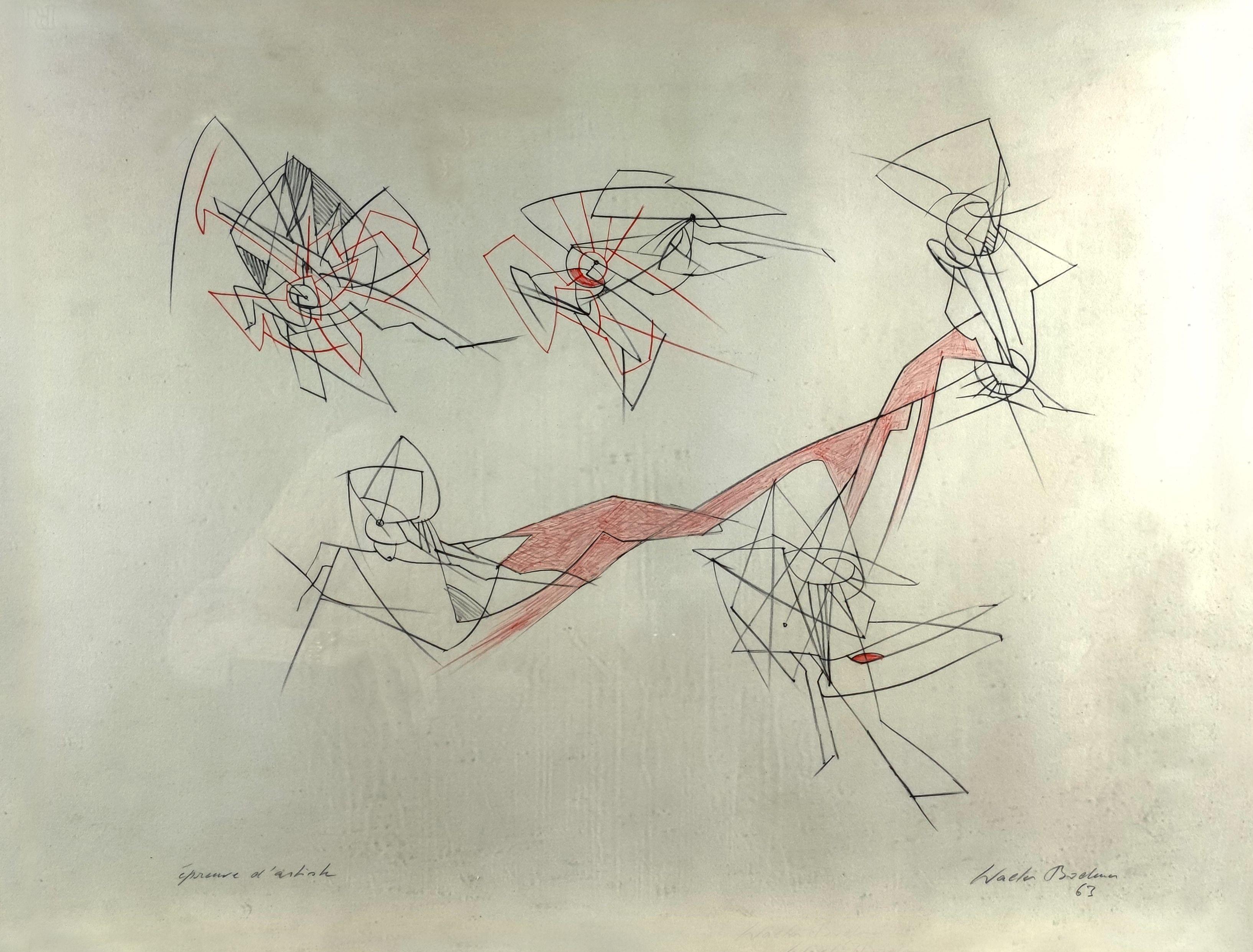 Silhouettes abstraites, gravure, épreuve d'artiste, signée, 60x80 cm