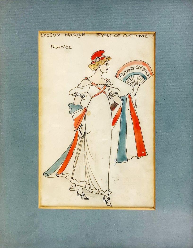 Type of costume: France, encre et aquarelle sur papier, 17,5x11 cm