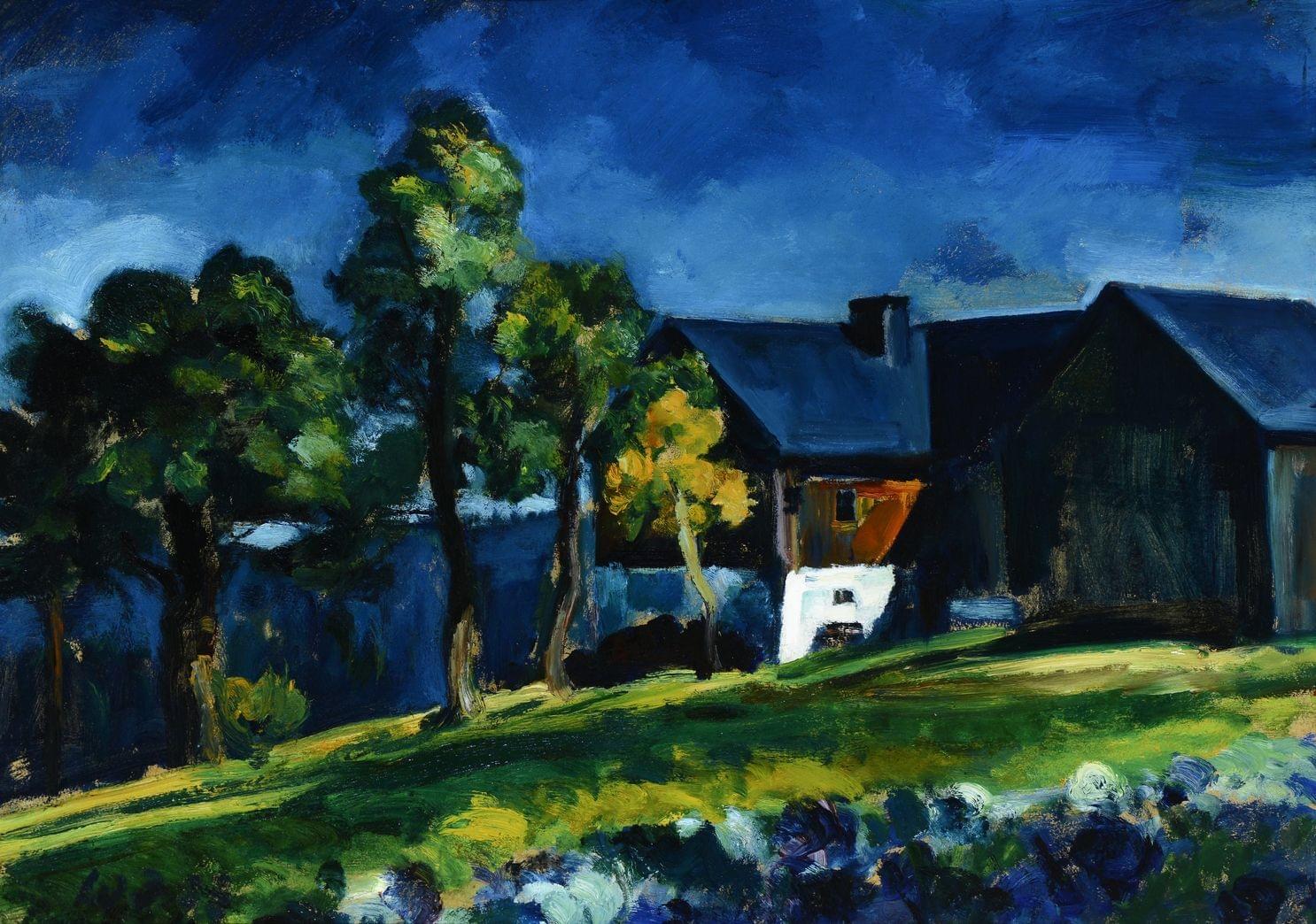 Chemin bordé d'arbres, huile sur carton monogrammée et datée 23,...
