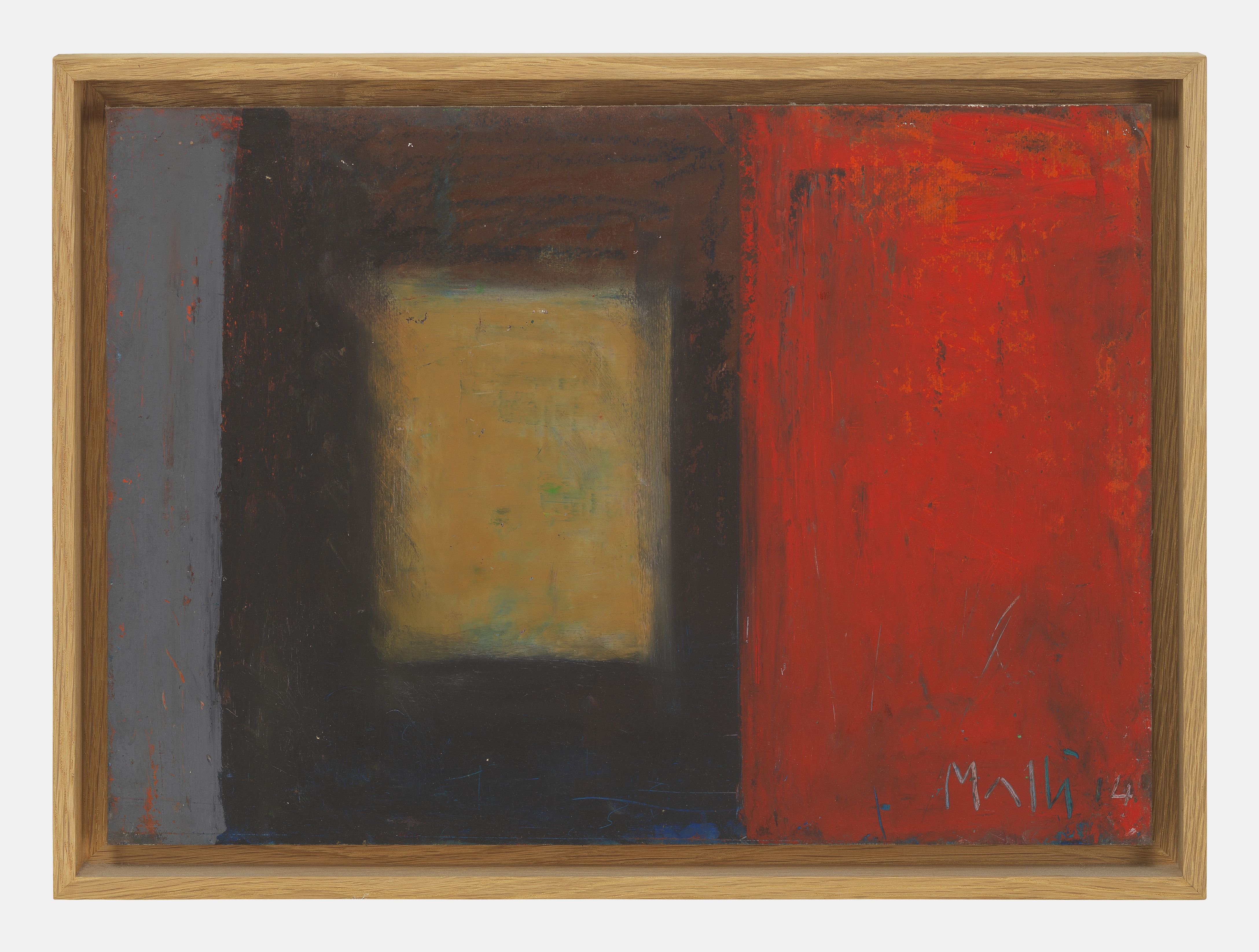 Abstraction bleu rouge vert, huile sur carton, signée et datée 7...