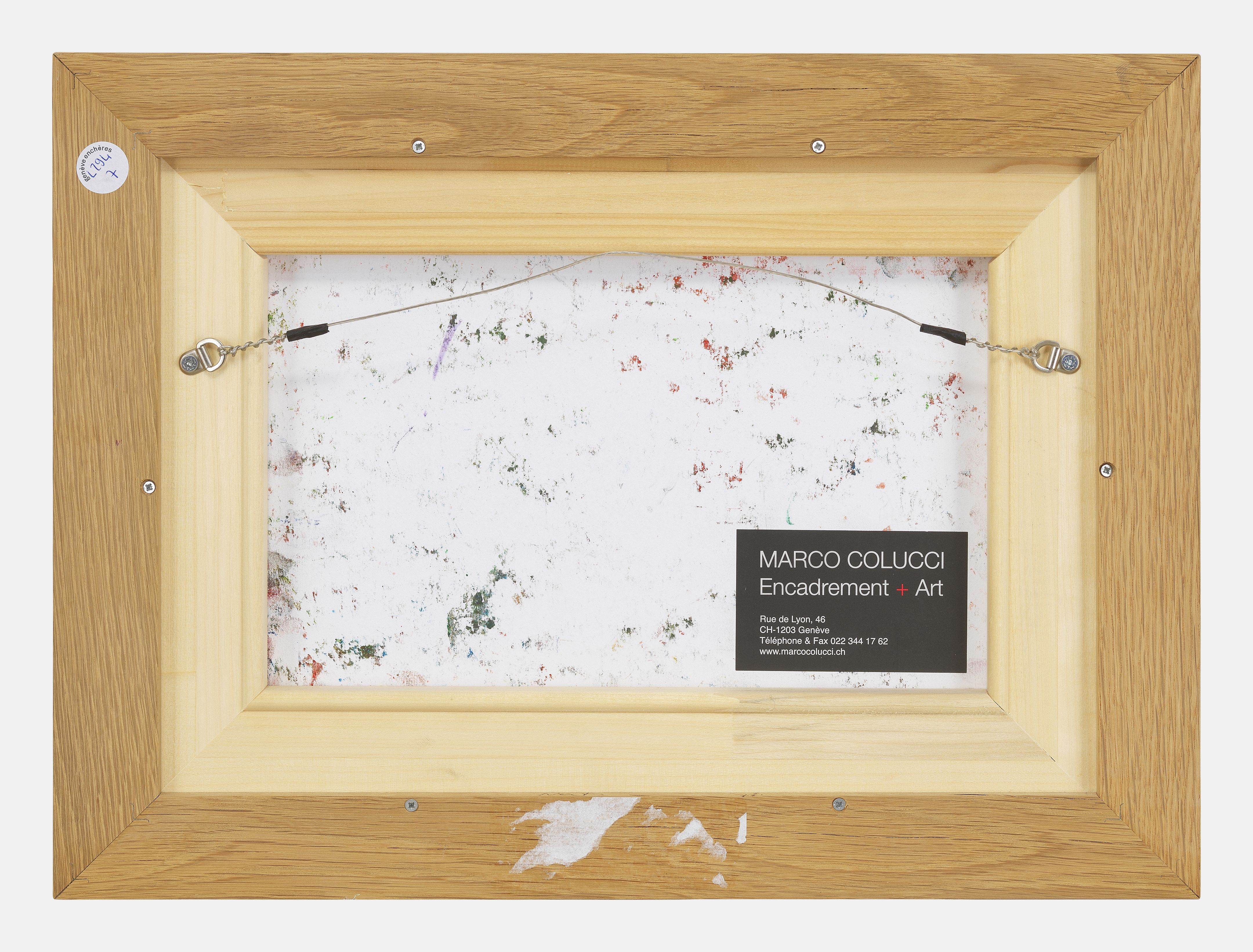 Barques sur le lac de Bret, craie grasse sur papier, signée et d...
