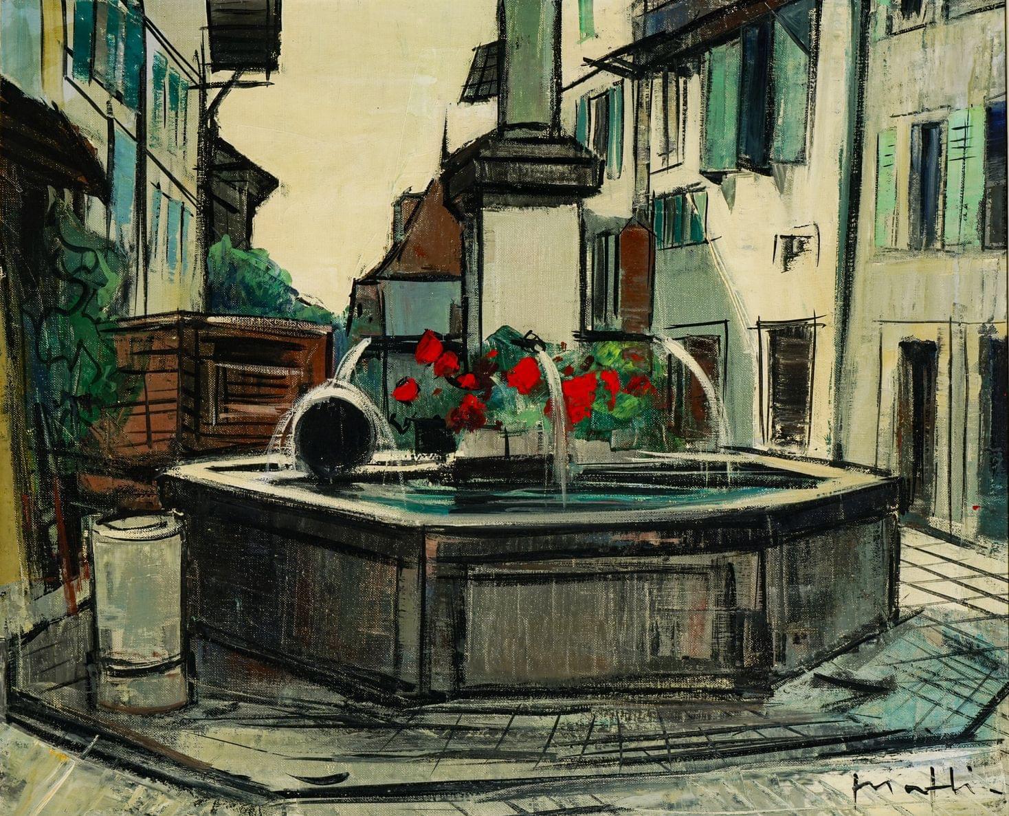 Ruelle animée, aquarelle sur papier, signée, 33x47,5 cm