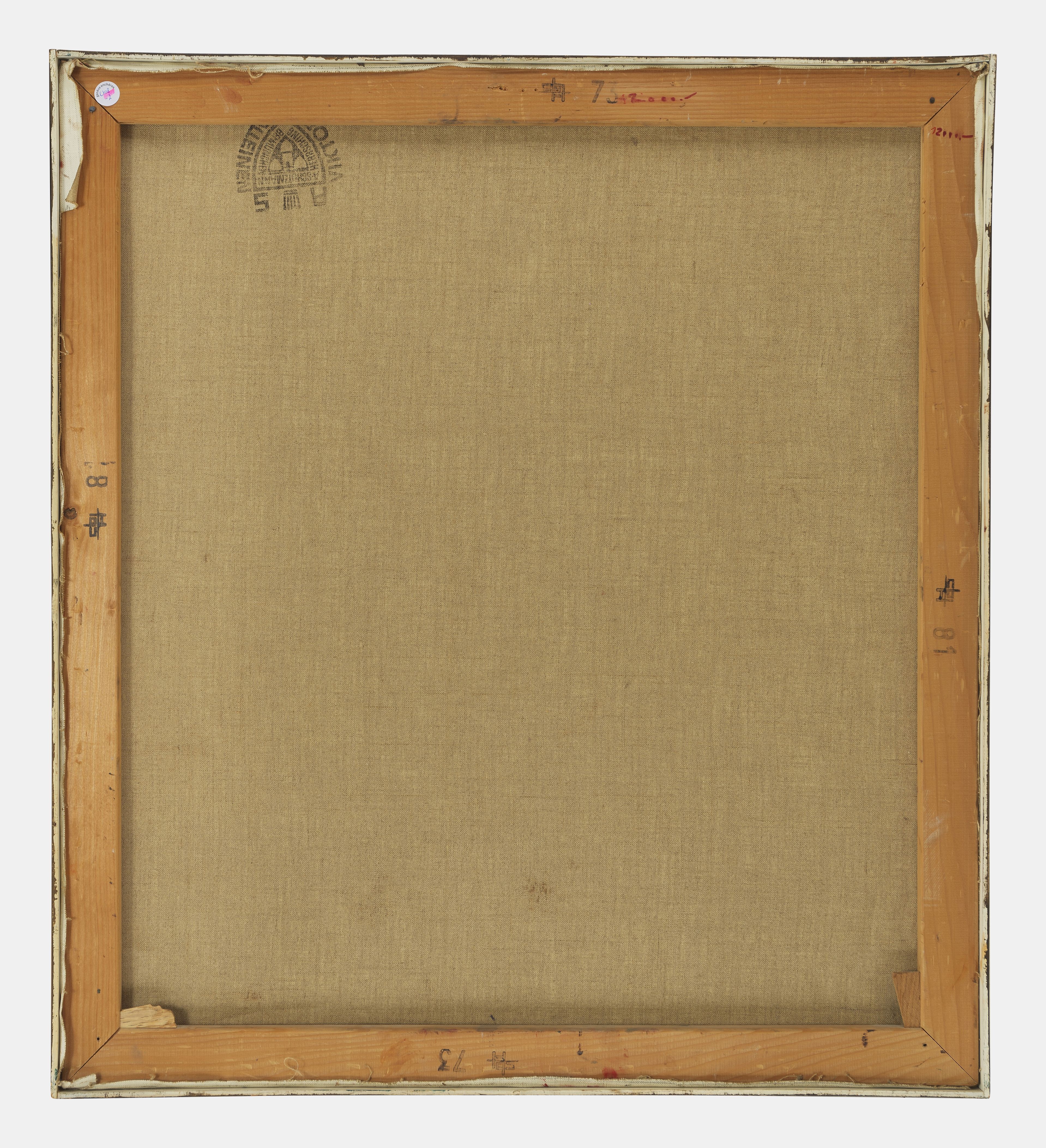 Abstraction bleu rouge vert, huile sur carton, signée et datée 7...