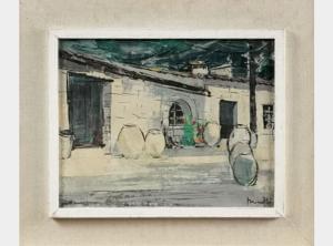 Ferme sous la neige, monotype sur papier, signé, 29,5x42 cm